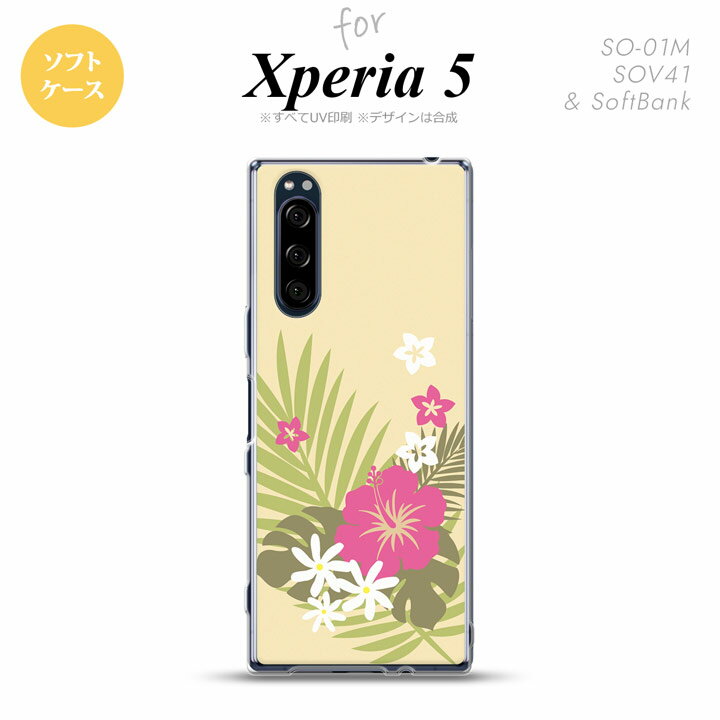 Xperia5 SO-01M SOV41 スマホケース ソフトケース ハイビスカス D ベージュ ピンク メンズ レディース キッズ ストラップホール おしゃれ かわいい かっこいい nk-xp5-tp1053