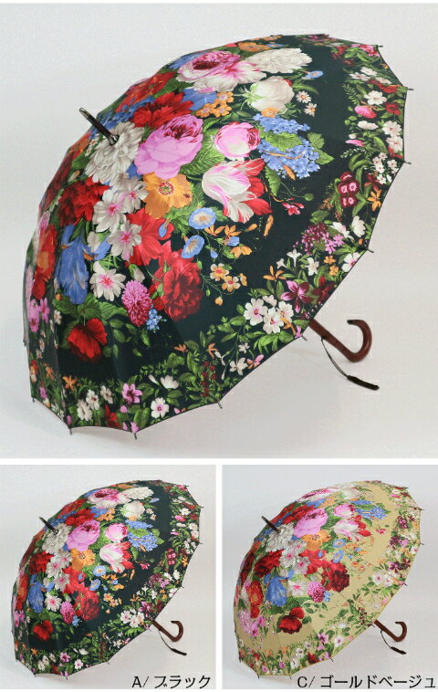 日本製傘 GRACITO グラシト カーボン骨使用 一枚張り フラワーガーデンプリント柄 レディース 16本骨長傘 21387