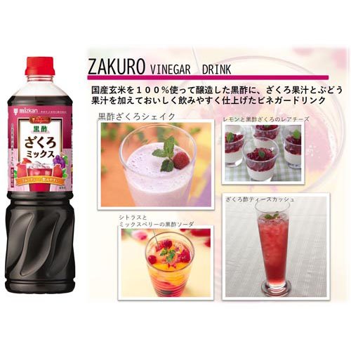 お店TOP>水 ミネラルウォーター ドリンク>健康酢(黒酢等)>黒酢>ミツカン ビネグイット 黒酢 ざくろミックス 6倍濃縮 業務用 (1L*4本セット)【ミツカン ビネグイット 黒酢 ざくろミックス 6倍濃縮 業務用の商品詳細】●国産玄米を100%使って醸造した黒酢に、ざくろ果汁とぶどう果汁を加えておいしく飲みやすく仕上げた黒酢飲料です。